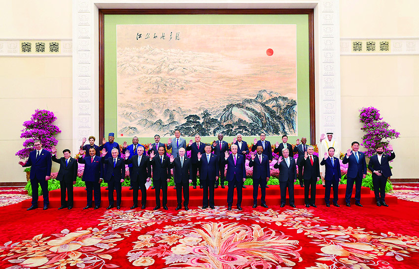 ▲10月18日上午,国家主席习近平在北京人民大会堂出席第三届“一带一路”国际合作高峰论坛开幕式并发表题为《建设开放包容、互联互通、共同发展的世界》的主旨演讲。这是会前,习近平同出席高峰论坛的外国国家元首、政府首脑和国际组织负责人等国际贵宾集体合影。新华社记者黄敬文摄