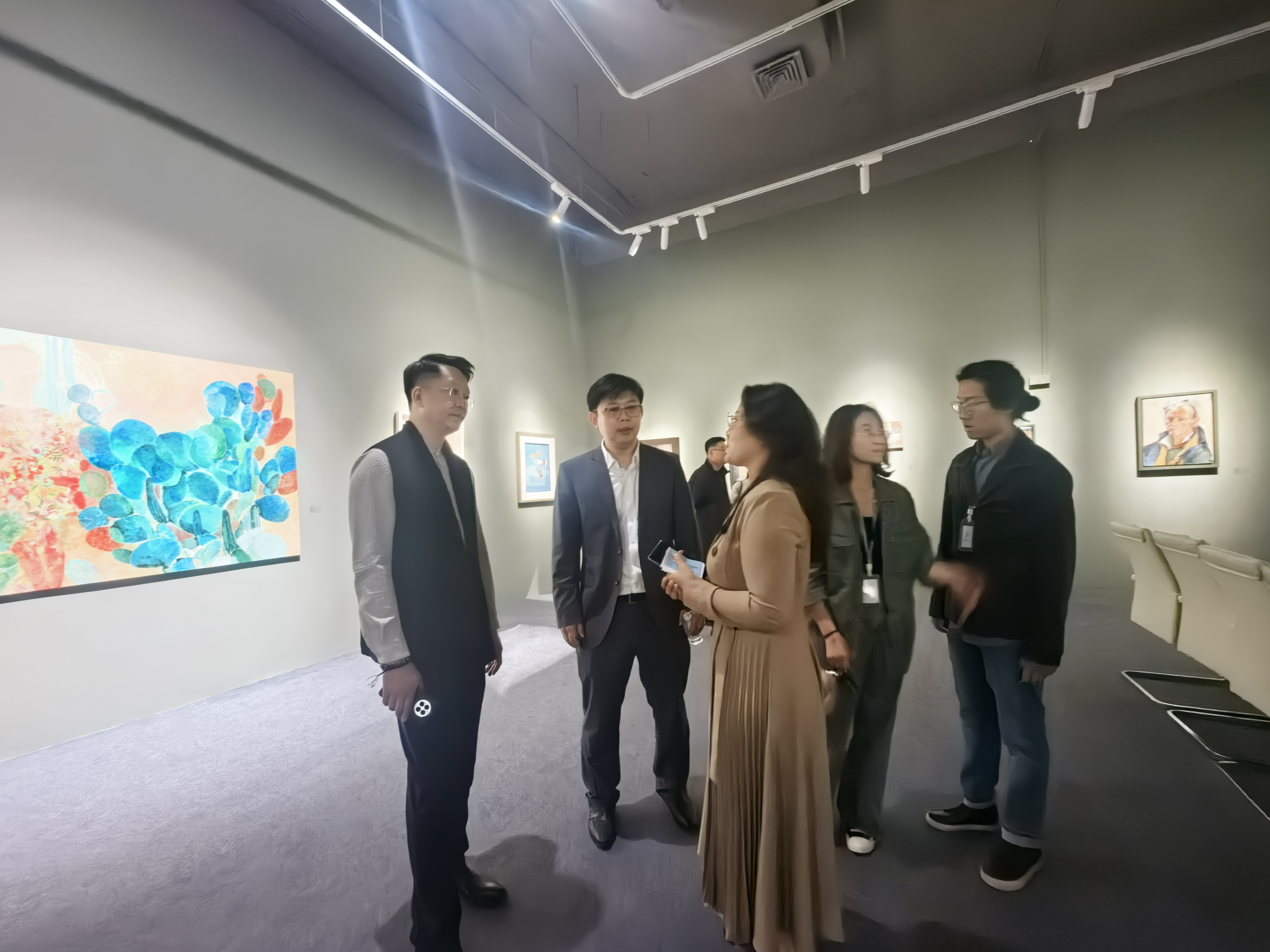 During the opening ceremony, Liu Jiang, Executive Vice President and Secretary-General of our association, met with Wang Fulun, General Manager of Beijing Shouwenke Cultural and Creative Properties Co., Ltd., Wang Jing, Director of the Art Research Center at Li Keran Painting Academy, and Anthony Connolly, President of the Royal Society of Portrait Painters in the UK, engaged in an exchange.