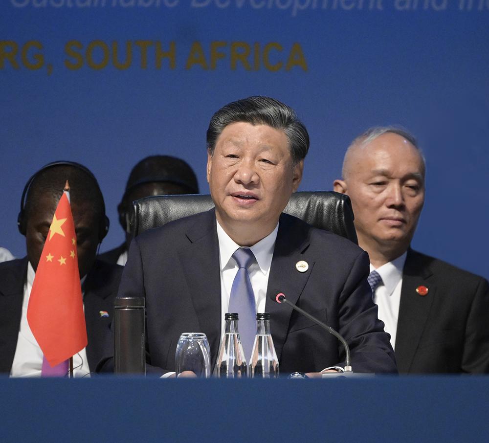 当地时间8月24日上午,国家主席习近平在约翰内斯堡出席金砖国家同非洲国家及其他新兴市场和发展中国家领导人对话会。习近平发表题为《勠力同心 携手同行 迈向发展共同体》的讲话。新华社记者 李学仁 摄